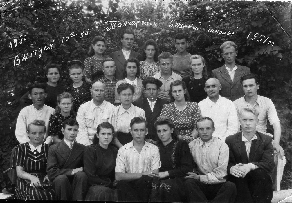 Если я не ошибаюсь, мужчина в центре второго ряда Расщепко Анатолий Никифорович, учитель математики. Позже он преподавал в сш.1, а затем в Казахском политехническом институте (в настоящее время Казахский национальный университет им. Сатпаева) на кафедре математики, где проработал более 30 лет.