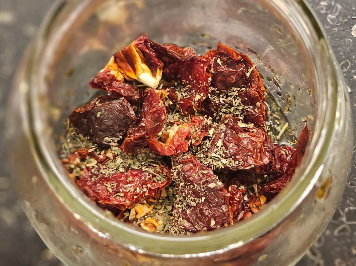 С помидорами еще проще - вяленые помидоры без соли залить оливковым маслом, просыпать прованскими травками. Через недельку уже вполне мягкими станут...