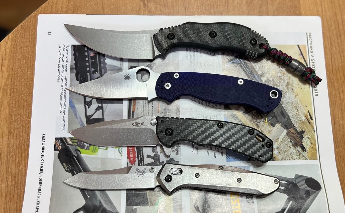 Majestic Posted February 12 Posted February 12 1. Bastinelli Creations Chopper Fixed Blade Knife Black Canvas Micarta (3.5" SW)Stonewash trailing point blade made from Bohler M390 steel. Цена 180.000 2. Spyderco Paramilitary 2 Knife Blue/Purple G-10 (3.4" Satin CPM-S110V). Цена 120.000 3. Zero Tolerance 0566CF Hinderer Assisted elmax. Цена 95.000 4. Benchmade 940 Osborne AXIS Lock Knife Green (3.4" Satin) накладки титан Flytanium. Цена 120.000 тел.87073009333 1 Quote