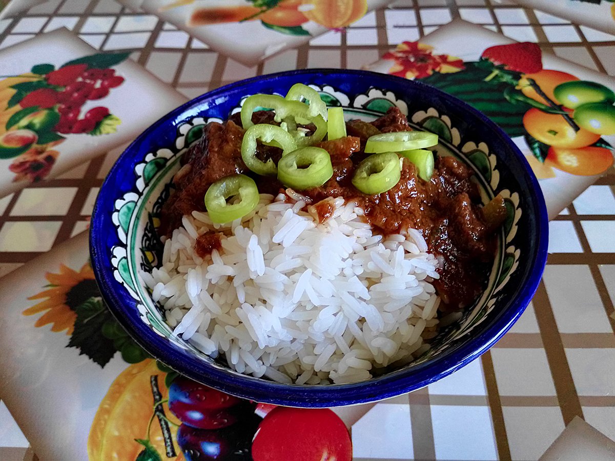 Yesterday Posted March 19, 2015 Posted March 19, 2015 Мясо в красном вине В сотейнике на растительном масле обжариваем куски мясного филе (лучше - говяжьего):Когда мясо дойдёт до полуготовности, выкладываем порезанный соломкой репчатый лук, специи (смесь перцев, паприка, хаджио):Потушив всё минут 5, тщательно помешивая, солим и заливаем красным полусладким вином - чтобы мясо было полностью покрыто жидкостью:На медленном огне, выпаривая лишний алкоголь тушим мясо до загустения соуса:Подаём с гарниром - с картофельным пюре или с рисом, как у меня:Приятного аппетита! 7 Quote